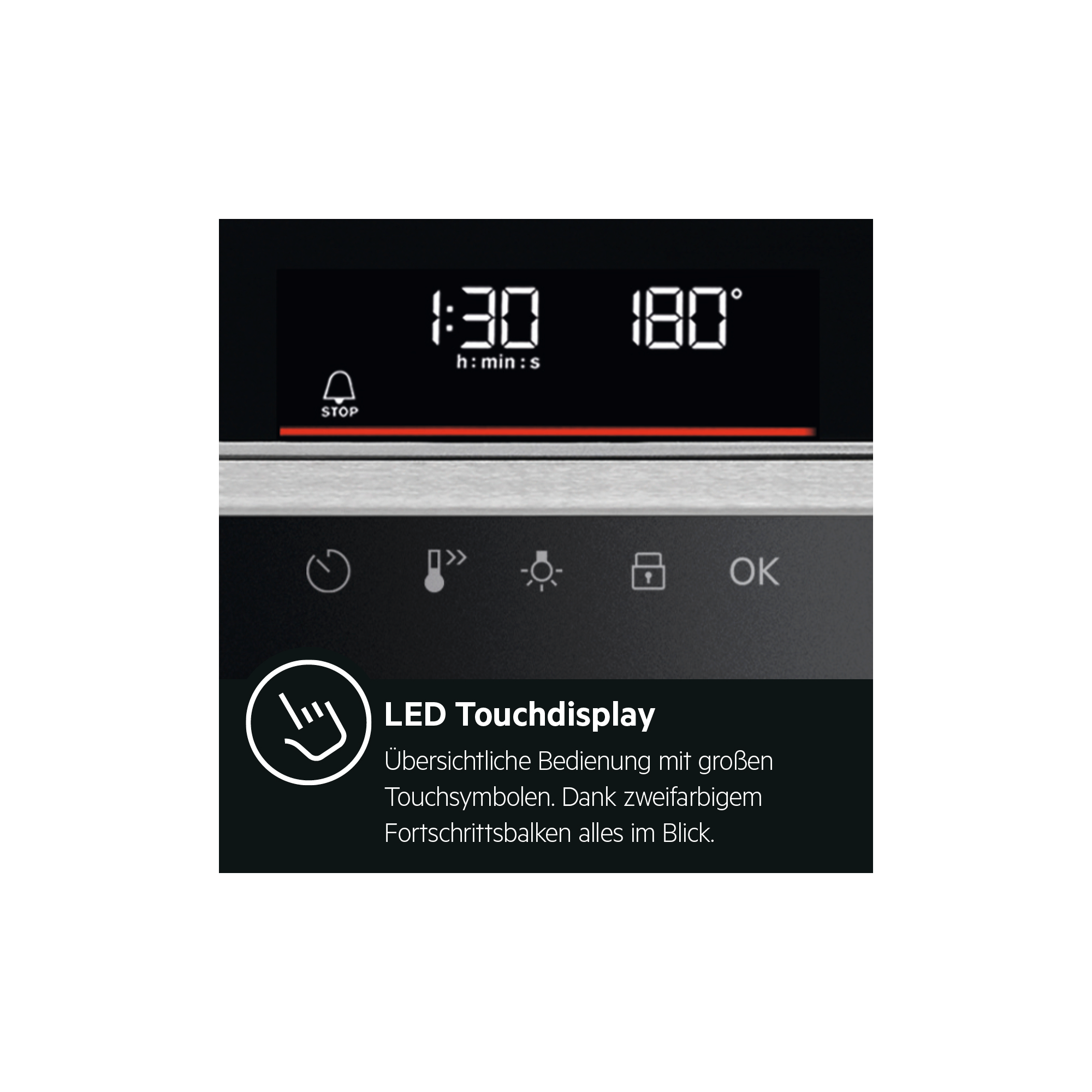 Духовий шкаф обладнаний LED-дисплеєм з сенсорним управлінням, що робить керування ним надзвичайно простим і інтуїтивним. Додатково, ви знайдете датчик температури для точного контролю приготування, а також швидкий обігрів для моментального запуску процесу. Пристрій має до 9 режимів нагріву, що забезпечує універсальність у використанні.