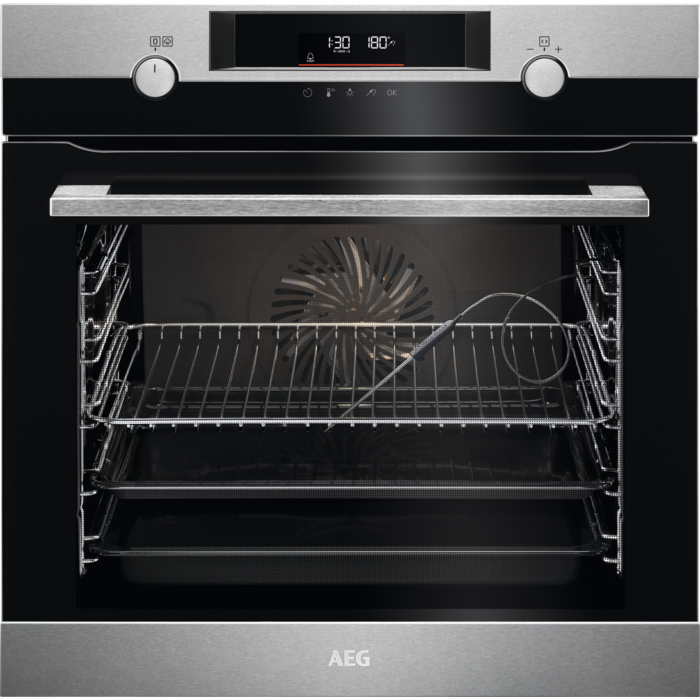 Духовий шкаф оснащений функцією SteamBake, що надає можливість випікати з використанням пари для досягнення ідеальної текстури. Ви також можете скористатися термосондами для контролю внутрішньої температури страв, що дуже зручно при приготуванні м'яса або запечених страв. Завдяки функції швидкого нагріву, ви зможете скоротити час приготування, розігріваючи духовку до потрібної температури всього за кілька хвилин.