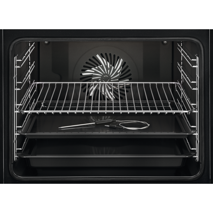 Внутрішня камера має об'єм 71 літр і три рівні для готування, що дозволяє одночасно готувати кілька страв. Духовка також має термощуп для м'яса, що допоможе контролювати готовність ваших страв. А завдяки автоматичній рекомендації температури вам не потрібно гадати, яка температура підходить для певної страви.
