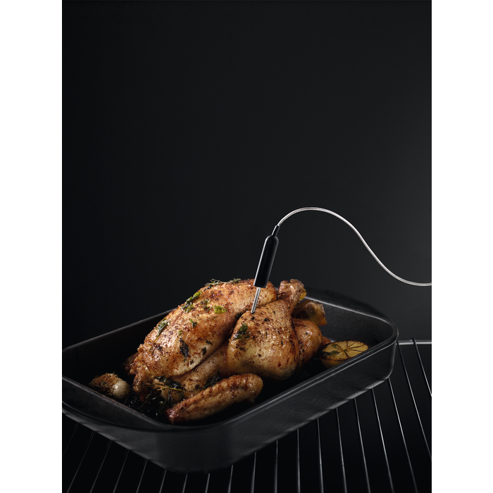 Інтелектуальні технології, такі як термощуп для м'яса та автоматична рекомендація температури, допоможуть досягти ідеальних результатів приготування. Духова шафа також оснащена сенсорними елементами керування, які роблять управління простим і зрозумілим.