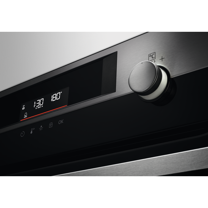 Духовка обладнана піролічною самоочищенням, що значно спрощує догляд за приладом. Просто активуйте режим, і прилад самостійно очиститься від забруднень. Для додаткового зручності, духовий шкаф має WLAN-інтеграцію, що дозволяє керувати ним з мобільного додатку AEG.