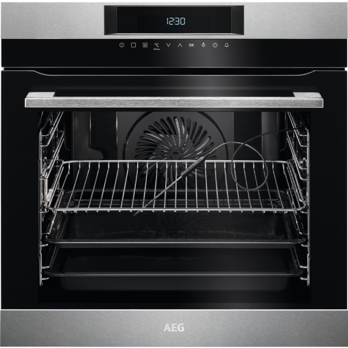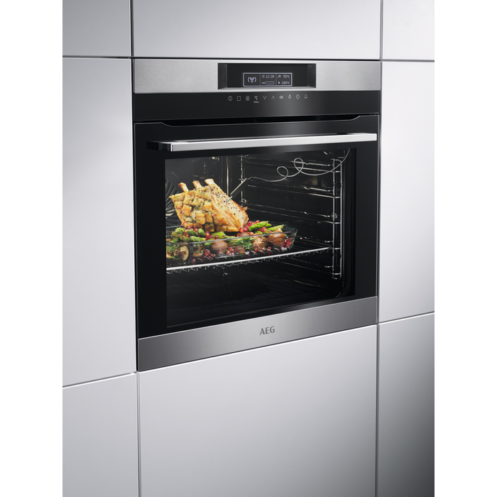 Духова шафа AEG BPK642120M поєднує в собі сучасний дизайн та передові технології для зручного приготування їжі. Виготовлена з нержавіючої сталі з антифingerprint, вона не тільки стильно виглядає, але й легка у догляді. Обсяг її внутрішньої камери складає 71 літр, що забезпечує достатньо місця для приготування страв для великої родини чи компанії друзів.