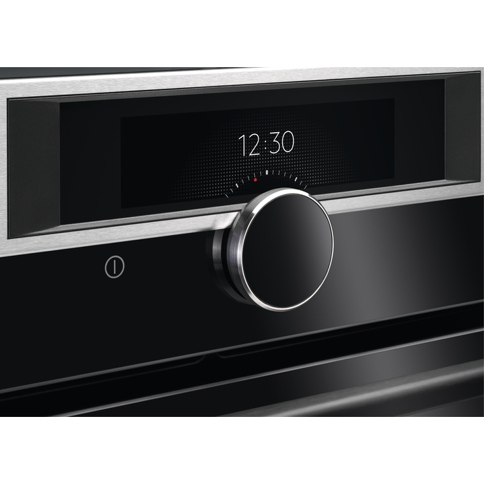 Панель управління виконана з скла та нержавіючої сталі з покриттям Antifingerprint, тому можна не боятися відбитків пальців на поверхні. Духовий шкаф має різноманітні функції приготування, включаючи гриль, конвекцію та пару 100%, що відкриває безмежні можливості для створення смачних страв.