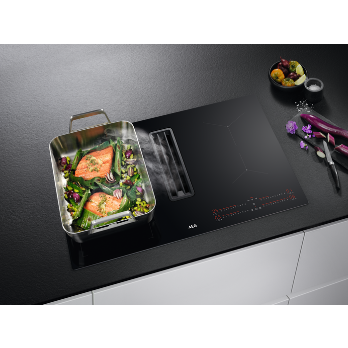 Духова витяжка AEG CD8454K поєднує в собі інноваційний дизайн та високі технології для забезпечення ефективності та зручності використання на вашій кухні. Модель має унікальну конструкцію 2 в 1, що об'єднує індукційну плиту з витяжкою, дозволяючи економити простір та забезпечувати максимальний комфорт під час приготування їжі.