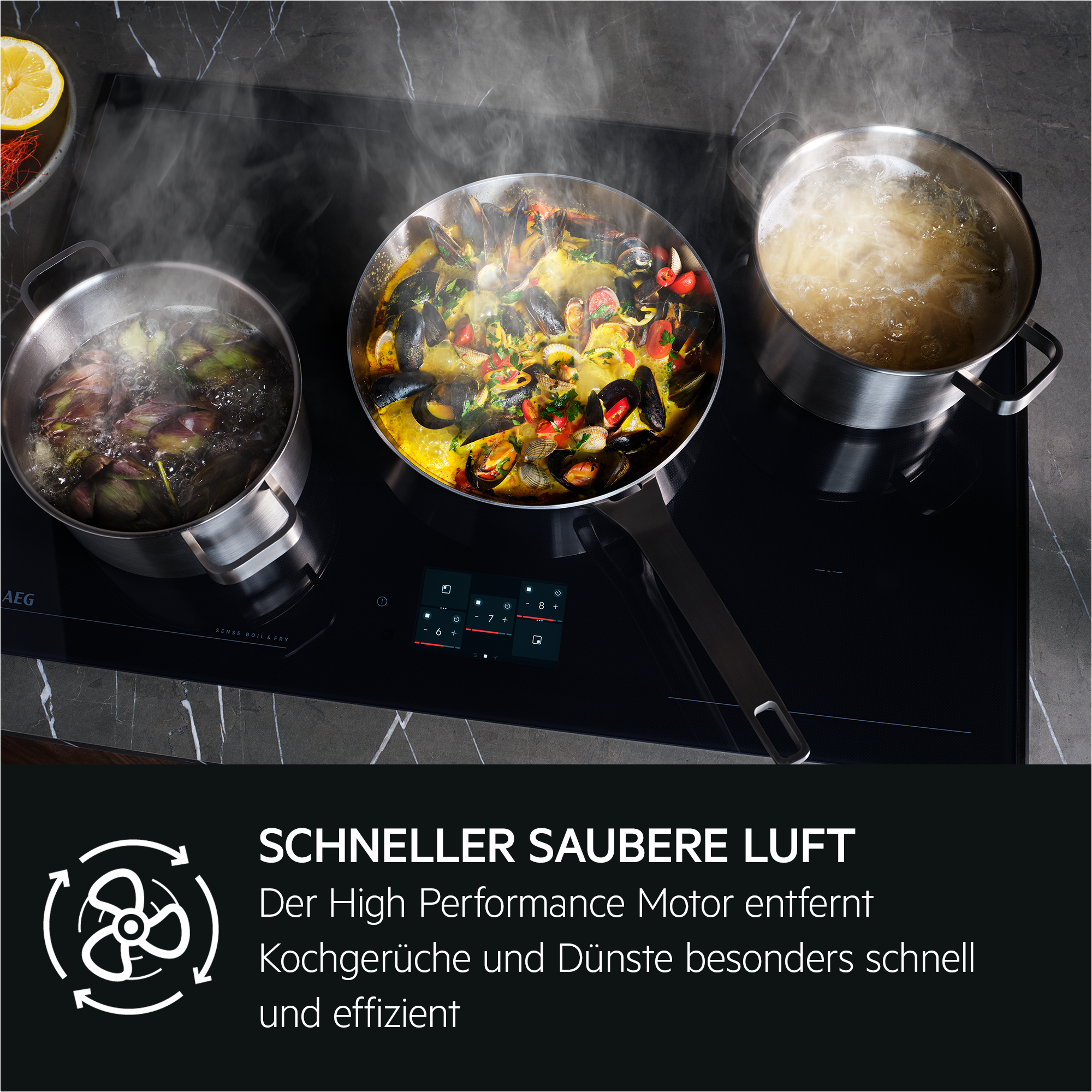 Витяжка AEG DLH6961B також пропонує фільтр Black Design, який можна мити, що спрощує його обслуговування. Інноваційна функція Hob²Hood дозволяє витяжці автоматично налаштовуватися в залежності від стилю приготування.