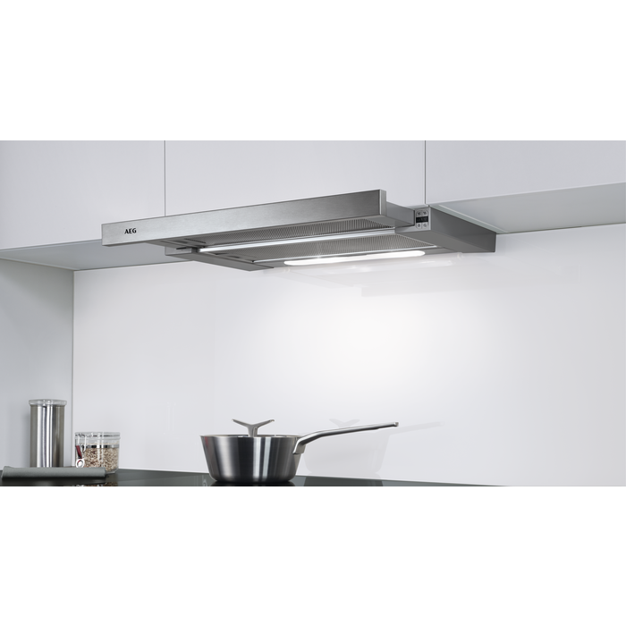Серед інших переваг моделі - електронне управління з простими у використанні кнопками і системою освітлення на базі LED-ламп, які надійно освітлюють робочу поверхню. Витяжка AEG також має два алюмінієвих жирових фільтра для ефективного захисту внутрішніх механізмів. Клас енергетичної ефективності А забезпечує низьке споживання електроенергії, а рівень шуму в максимальному режимі - до 67 дБ.