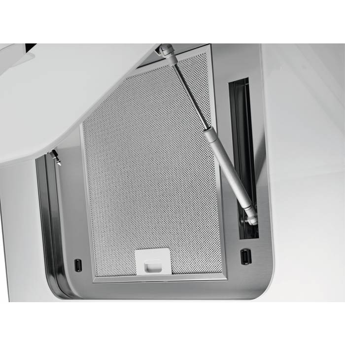 Витяжка має алюмінієвий жировий фільтр, що легко миється та забезпечує надійний захист від жирових відкладень. Також, для максимального комфорту, передбачено дві LED-позиційні лампи, які рівномірно освітлюють робочу поверхню. Витяжка може працювати в режимі відведення повітря або в рециркуляційному режимі, якщо ви використовуєте вугільний фільтр.