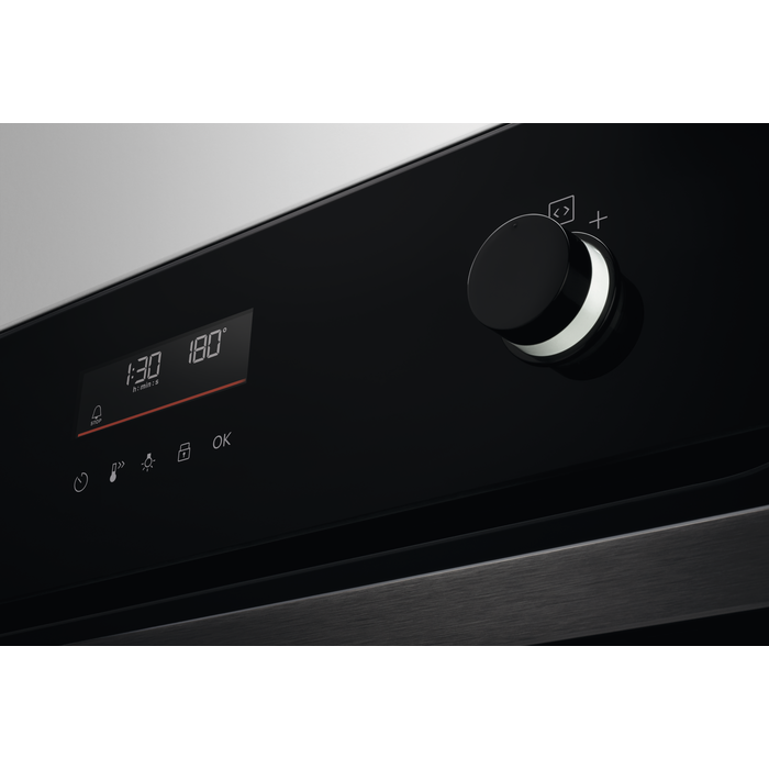 Цей мультифункціональний духовий шкаф оснащений унікальною технологією піроліт очищення, що дозволяє легко підтримувати чистоту та гігієну. У режимі піролізу забруднення в камері перетворюються на попіл, який можна просто витерти. З LED дисплеєм з сенсорним управлінням ви зможете з легкістю вибирати необхідні програми з 45 автоматичних налаштувань для приготування їжі.