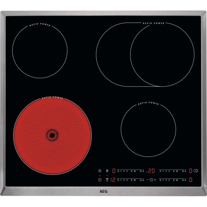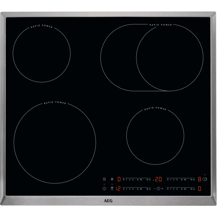 AEG EK60RX - варильна поверхня з верхнім розміщенням панелі управління - це надійний та функціональний прилад для вашої кухні. Модель має 4 комфорки з випромінювальним нагрівом з можливістю регулювання на 14 рівнях. Оптична ознака OptiFit Frame - нержавіюча сталь - підкреслюється лазерно вигравірованим логотипом на передній частині, що надає йому якісний вигляд та функціональність. Комфорка EK60RX оснащена функцією Hob²Hood, яка автоматично вмикає вентиляцію під час приготування страв. Керування комфоркою здійснюється за допомогою сенсорної панелі Slider Touch, а функція Direct-Control дозволяє швидко налаштувати потрібний рівень нагріву. Також, варильна поверхня має електронні індикатори для всіх 4 комфорок, функцію паузи та автоматичні режими приготування, що дозволяють автоматично регулювати потужність нагріву. Завдяки функції Öko-Timer, ви зможете заощадити енергію, оскільки комфорка вимкнеться до завершення приготування і використає залишкове тепло. Крім того, OptiHeat Control надає 3-х рівневий індикатор залишкового тепла. Варильна поверхня також оснащена функцією Kindersicherung, що виключає можливість випадкового ввімкання під час гри дітей, та функцією блокування потужності, яка запобігає непередбаченому зміненню потужності нагріву. Вибираючи AEG EK60RX, ви отримуєте надійний, функціональний та стильний прилад, який стане невід'ємною частиною вашої кухні.