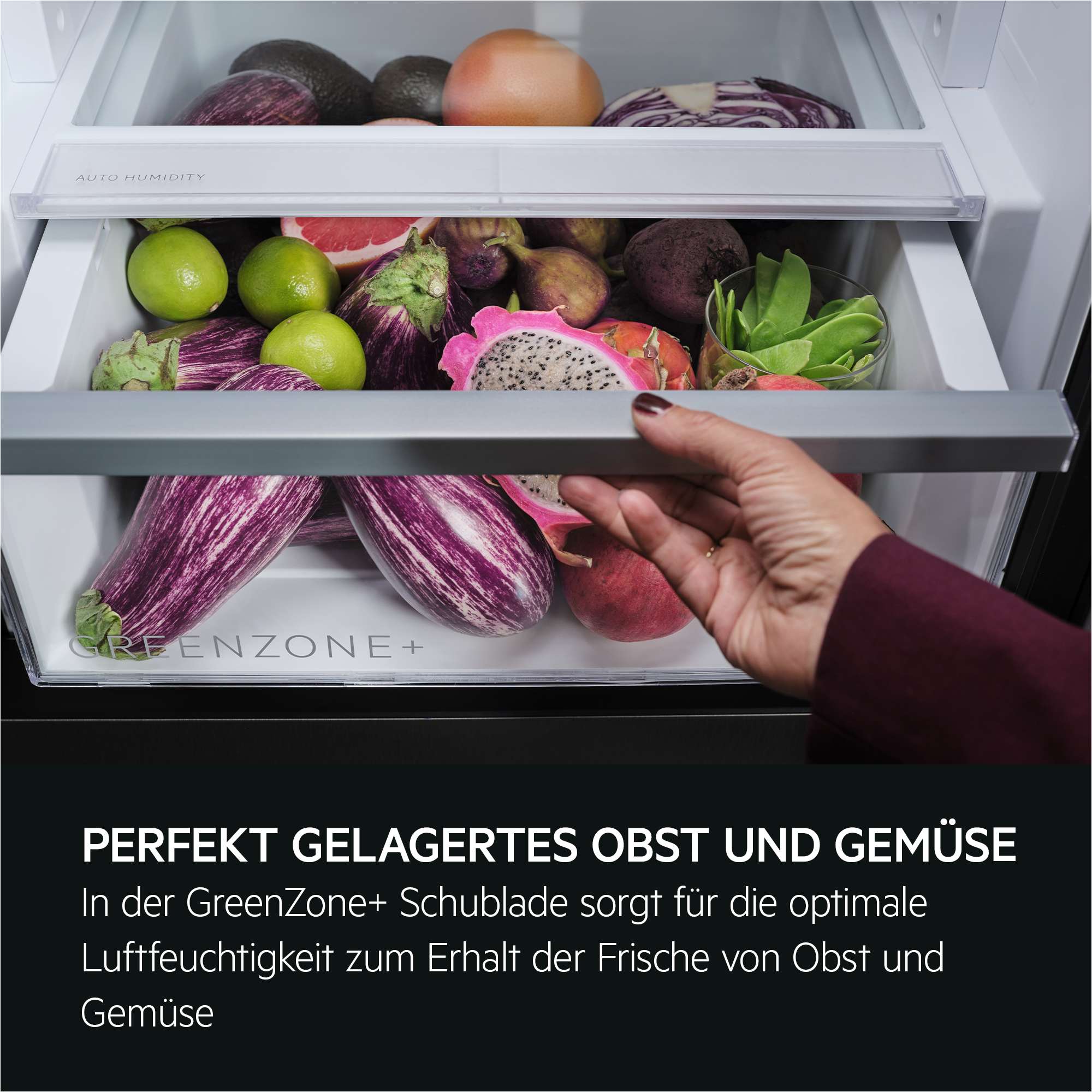 Холодильник також включає в себе FROSTMATIC для швидкого і дбайливого заморожування, а SoftClosing забезпечує легке закриття дверей. Модель має трирівневу регулювання температури в зоні свіжості, а EcoLine забезпечує збереження енергетичних ресурсів, що робить його екологічним вибором для вашого дому.