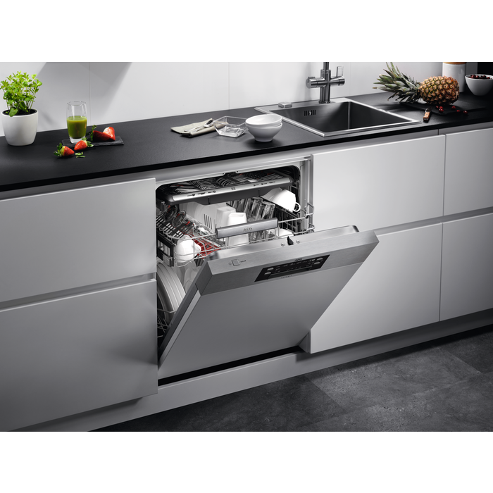 Посудомийна машина AEG FEE8380XPM забезпечить вам комфорт та якість в митті посуду. Завдяки технологіям ProClean™ Satelliten-Sprüharm, ComfortLift® та AirDry ви отримаєте ідеально чистий посуд, не завдаючи йому шкоди. Машину можна легко використовувати завдяки LED-дисплею та сенсорному управлінню.