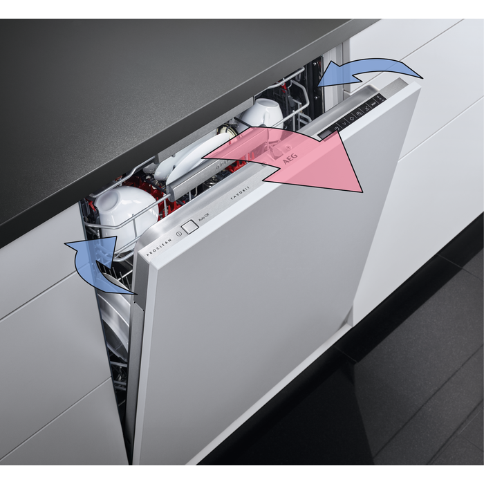 Посудомийна машина AEG FSK73777P - це ідеальне рішення для сучасної кухні, що поєднує в собі інноваційні технології та високу продуктивність. Вона обладнана **AirDry**, що забезпечує природне сушіння посуду без залишкової вологи, а також **GlassCare** для дбайливого миття шкляного посуду.