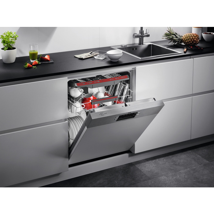 Компактний і стильний, AEG GS649EXTI легко вбудовується у вашу кухню, ідеально підходить для будь-якого інтер'єру завдяки електронній довідці про наповнення солью та ополіскувачем. Оберіть AEG GS649EXTI та надайте вашій родині якісний сервіс з миття посуду!