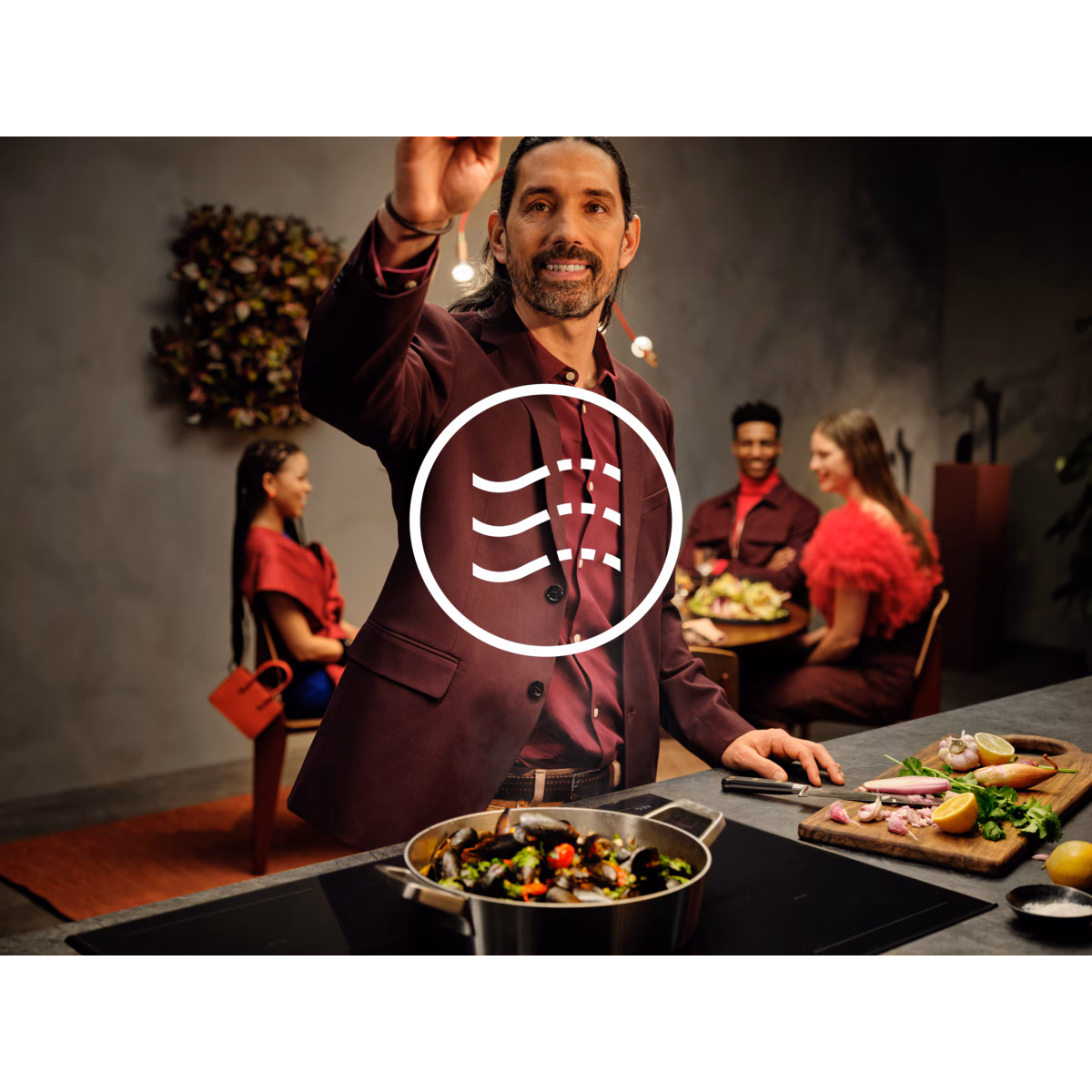 Додатково, Hob²Hood функція дозволяє взаємодіяти з плитою, автоматично регулюючи потужність витяжки в залежності від інтенсивності приготування їжі, що підвищує комфорт під час готування.