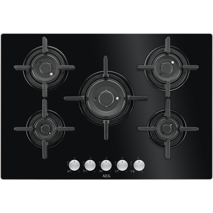 AEG HG579584NB - газова варильна поверхня зі скляним покриттям від виробника AEG. Ця варильна поверхня пропонує п'ять тримачів посуду з чавуну, що забезпечує надійну підтримку посуду під час готування.