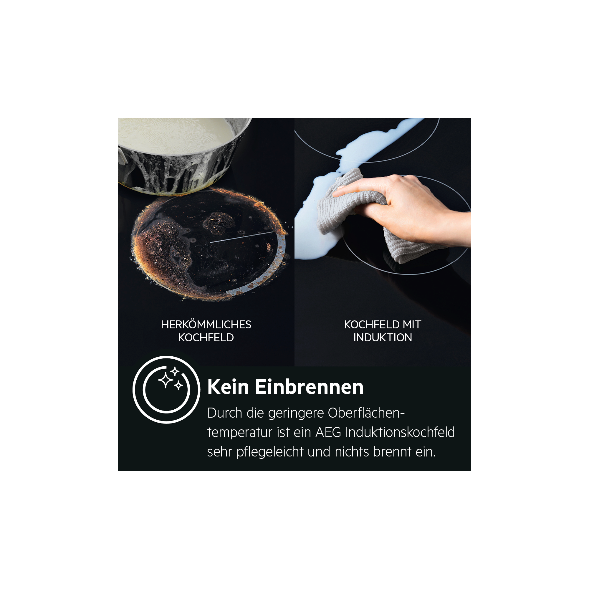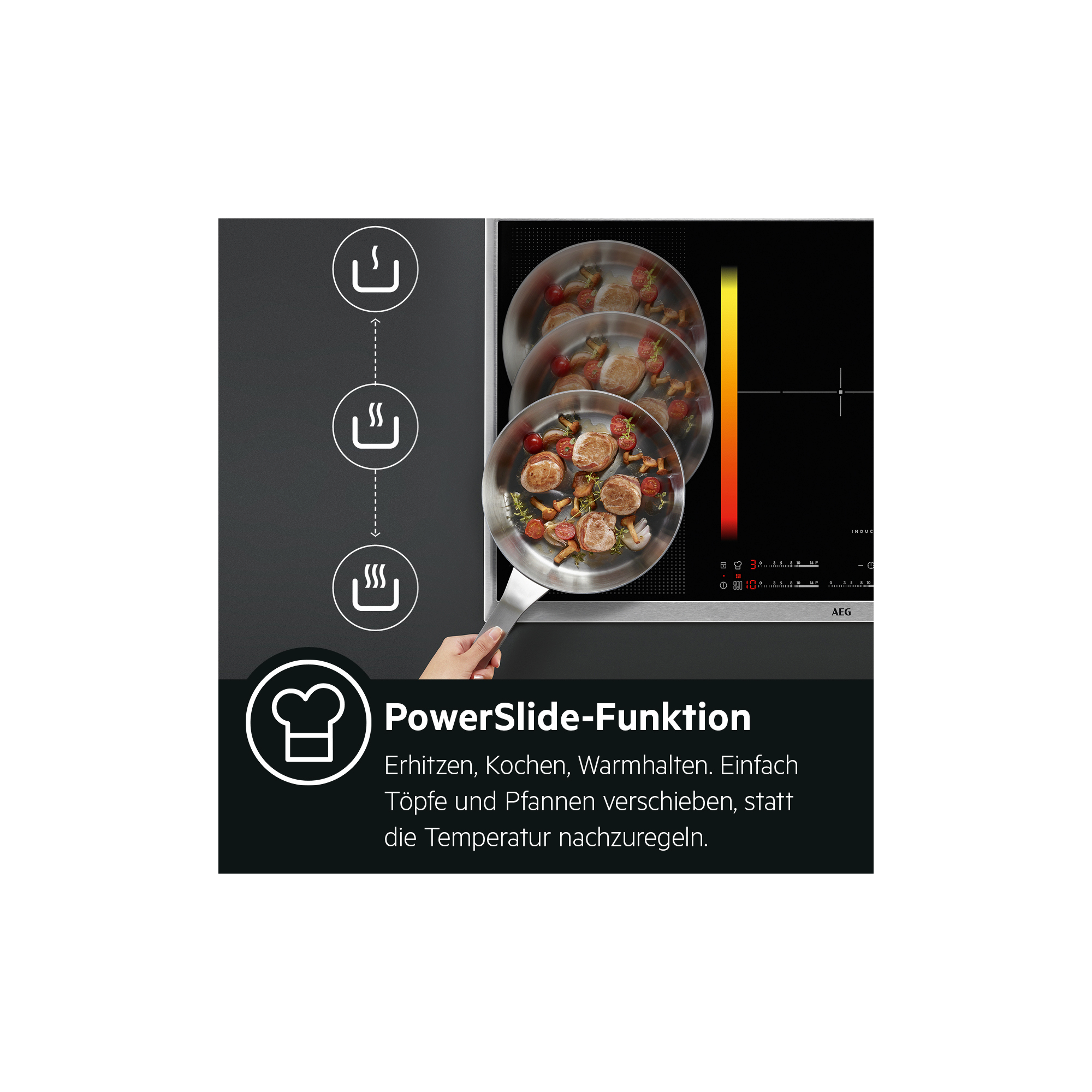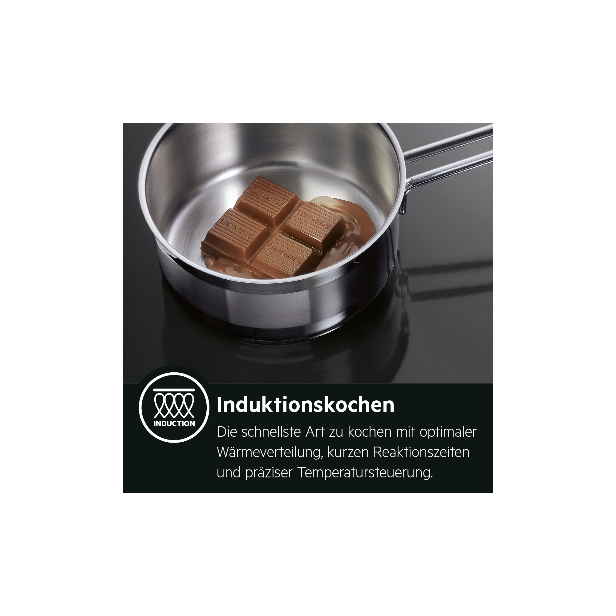 Варильна поверхня AEG I64AV423XB - це сучасний кухонний прилад, який виготовлений в Німеччині з використанням технології EcoLine. Вона пропонує 4 гнучкі зони для приготування страв, з можливістю використання SenseBoil®-Kochfeld Bridge-Funktion і Hob²Hood-Funktion.