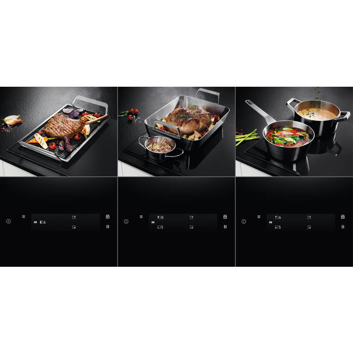 Завдяки різним розмірам та потужностям кожної зони, ви зможете готувати різноманітні страви одночасно. Крім того, функція Öko Timer™ дозволяє ефективно використовувати тепло для завершення процесу готування. Контроль OptiHeat забезпечує 3-рівневий контроль за залишковим теплом, що дозволяє уникнути ненавмисного опікання.