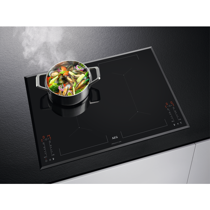 Варильна поверхня AEG модель IKE74451FB - це індукційна безрамкова під розміри 710 мм з технологією BridgeHob2Hood®. Вона оснащена 4 зонами нагріву, керуванням за допомогою сенсорного екрану з підсвічуванням та функцією виявлення посуду.