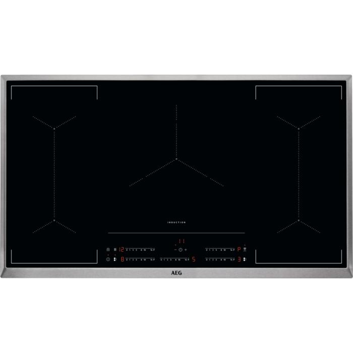 Варильна поверхня AEG IKS9545BXB - це автономна плита з верхнім розташуванням елементів керування, що працює за принципом індукційного нагрівання. Вона оснащена 5 гнучкими зонами, які дозволяють розміщувати посуд різного розміру. Завдяки технології Hob²Hood можливе автоматичне управління витяжкою.