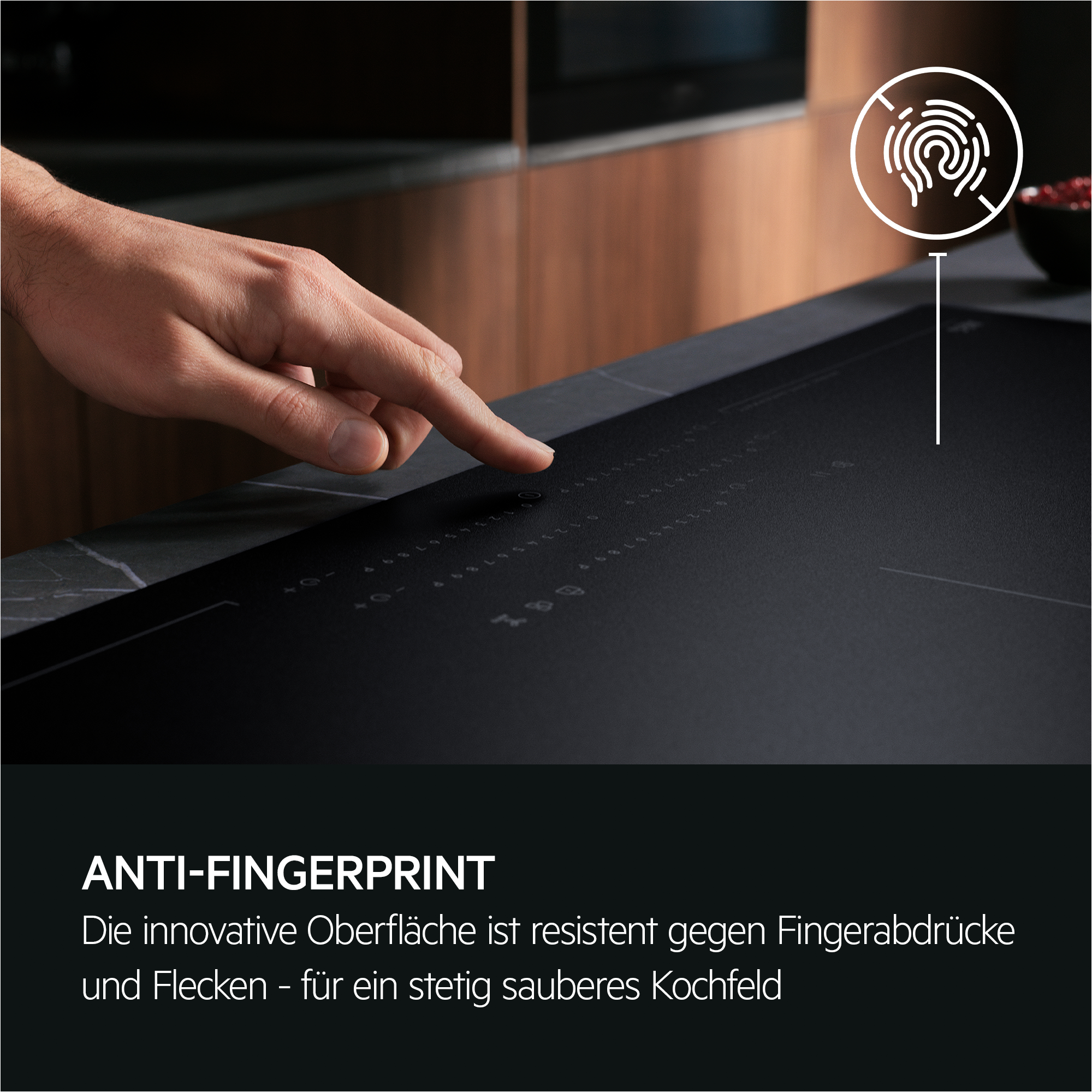 Ця варильна поверхня має керамічне скло SaphirMatt, яке стійке до подряпин, а також матовий алюмінієвий раму MattBlack, що робить її дуже стильною та легкою в очищенні. Крім того, вона оснащена Power-функцією для кожної зони та функцією паузи для зручності приготування страв.