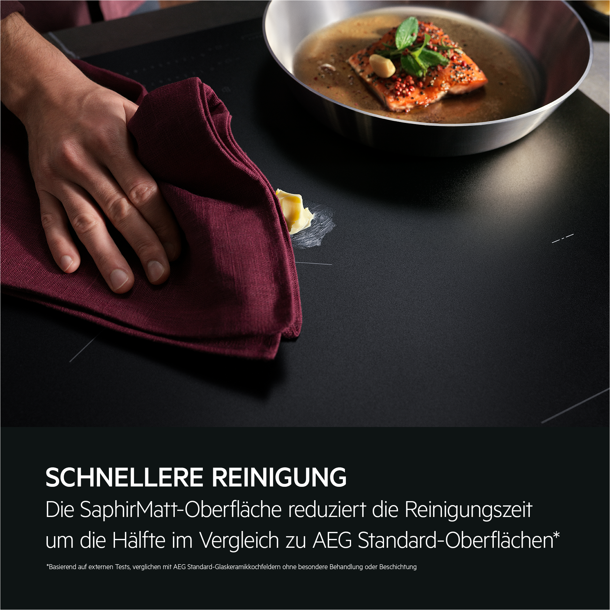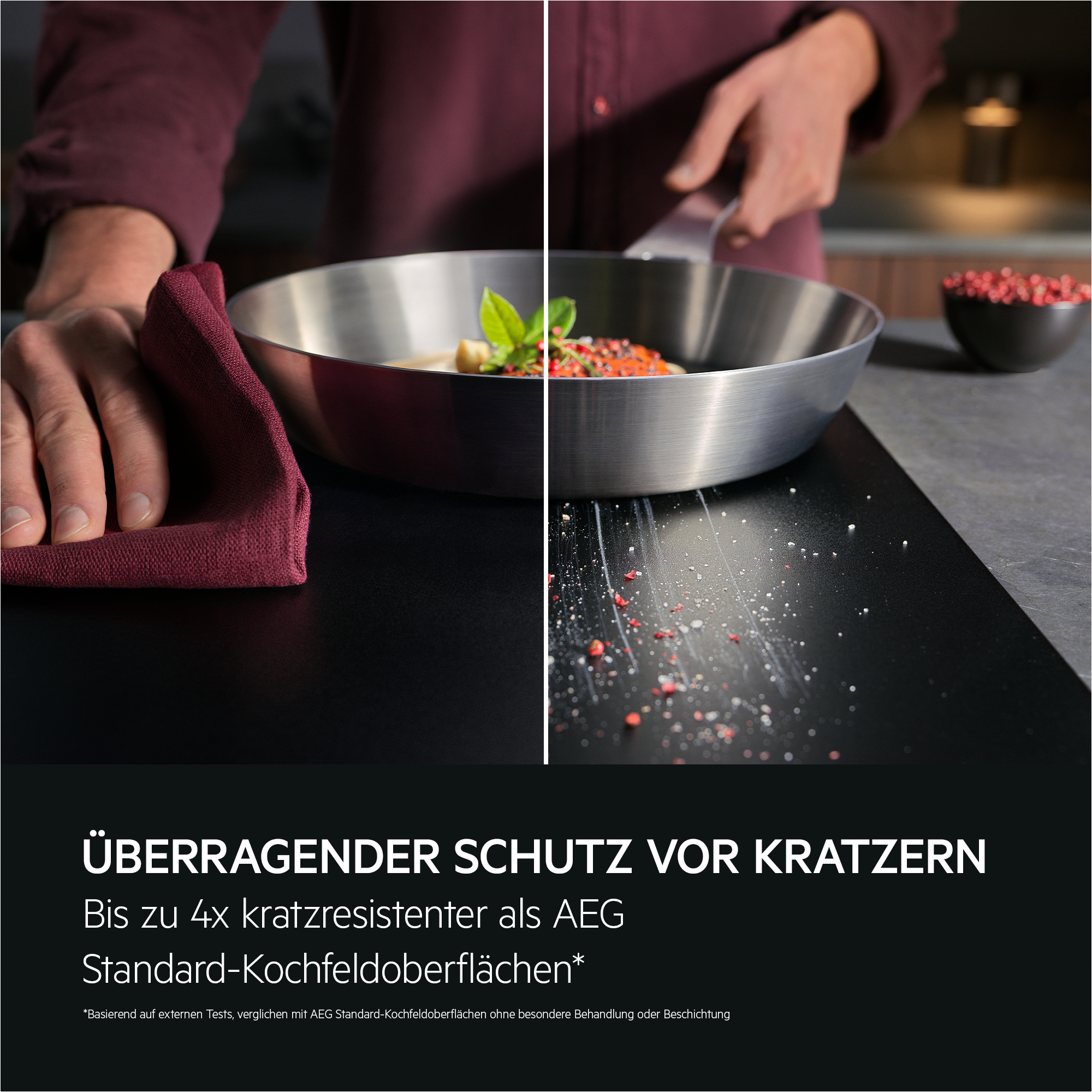 Поверхня має OptiHeat Control - 3-ступінчастий показник залишкового тепла, OffSound Control для керування звуком, Kindersicherung та Verriegelungsfunktion для безпеки. Також є функція Leistungsabhängige Abschaltautomatik та SlimFit-Design, яке забезпечує низьку вбудовану глибину та полегшує планування.