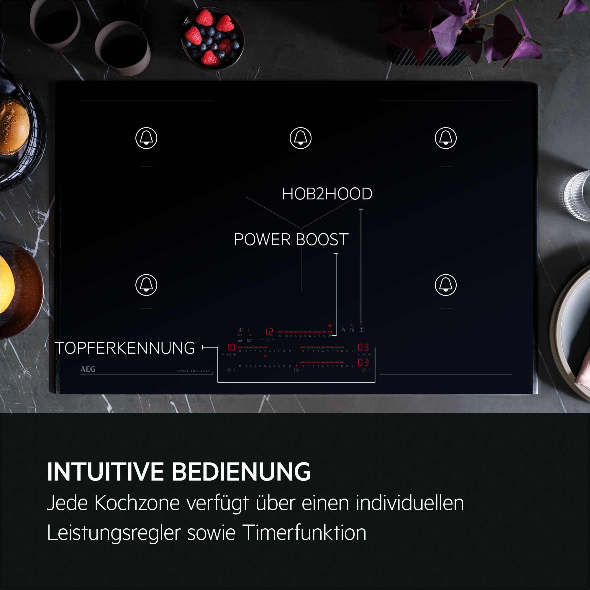 Варильна поверхня AEG KID8857IB - це сучасний індукційний кухонний прилад, який поєднує в собі високу функціональність і енергоефективність. Завдяки технології SenseBoil® Sensor вона автоматично реагує на утворення бульбашок і знижує потужність, щоб продовжити приготування. Також пристрій оснащений бездротовим з'єднанням Wi-Fi, що дозволяє керувати ним зі смартфону або планшета.