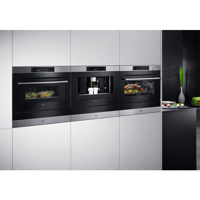 Мікроволнова піч AEG оснащена рядом інноваційних функцій приготування, таких як Гриль, Конвекція, Розморожування та багато інших — від Нижнього нагріву до Turbo-Grill. Це дозволяє не лише швидко розігрівати їжу, але й готувати її різними способами, зберігаючи при цьому максимум корисних речовин.