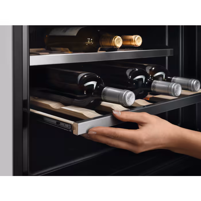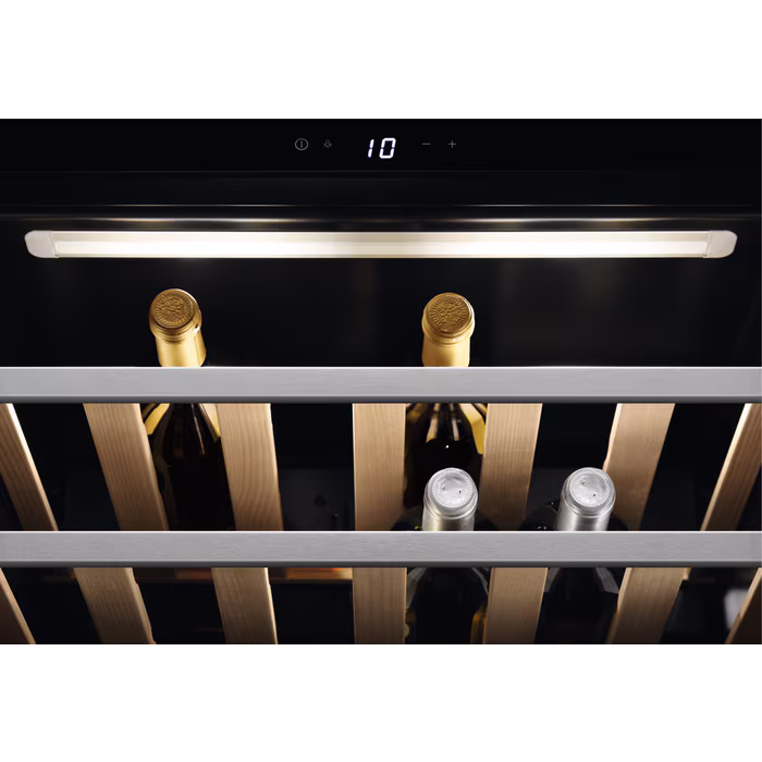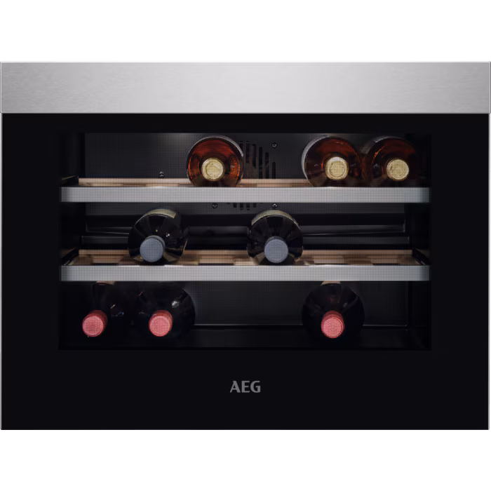Цей холодильник також включає в себе **дві дерев'яні полиці** та одну пластикову для зручного розміщення пляшок, а також **функцію температурного оповіщення** для забезпечення безпеки в експлуатації. Його **елегантний дизайн** в кольорі нержавіючої сталі з антипальцем робить його стильним доповненням до будь-якого інтер’єру. Габарити AEG KWK884520M дозволяють вбудовувати його в стандартну кухонну нішу висотою **450 мм**, з легким доступом через систему відкривання без ручок.