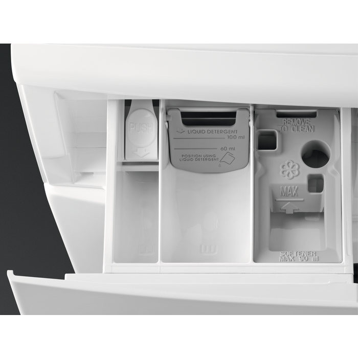 Завдяки системі Aqua Control та датчику заповнення води, гарантовано запобігається можливим протіканням, а великий люк дозволяє зручно завантажувати і вибирати білизну. Ємність барабану складає 7 кг, що підходить для середніх розмірів сімей.
