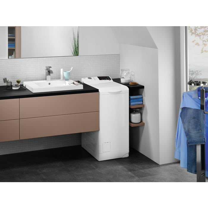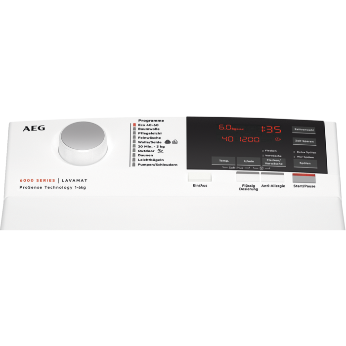 Пральна машина AEG L6TB360TL - це пральна машина з вертикальним завантаженням з великим LED-дисплеєм. Вона оснащена інноваційною технологією ProSense®, яка забезпечує точний розрахунок часу, води та електроенергії всіх циклів прання.