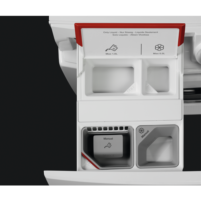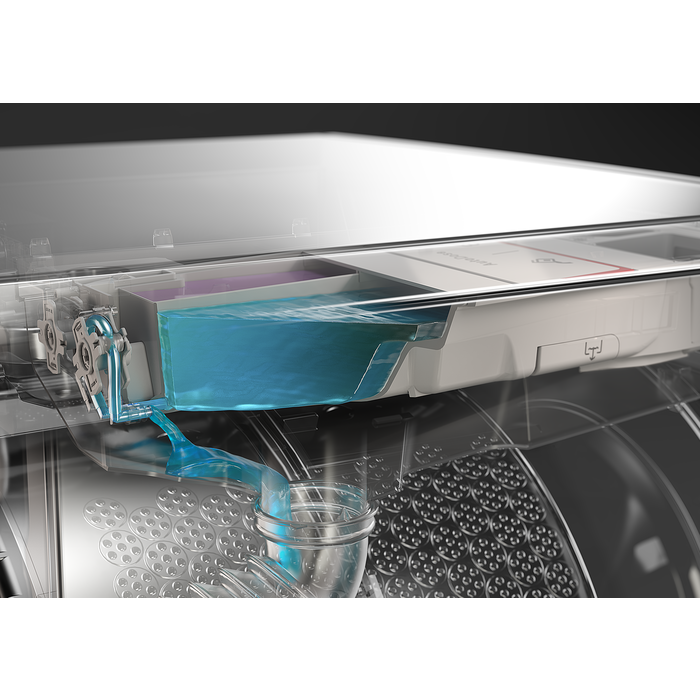 Машина має чотири відділення для пральних засобів, функцію ошпарування та можливість додаткового полоскання. Крім того, вона оснащена вбудованим датчиком Aqua Control, який захищає від зливу води при будь-якій аварійній ситуації. Комфортним рішенням є також наявність програм парової обробки, яка забезпечує додаткову дбайливість про тканини.