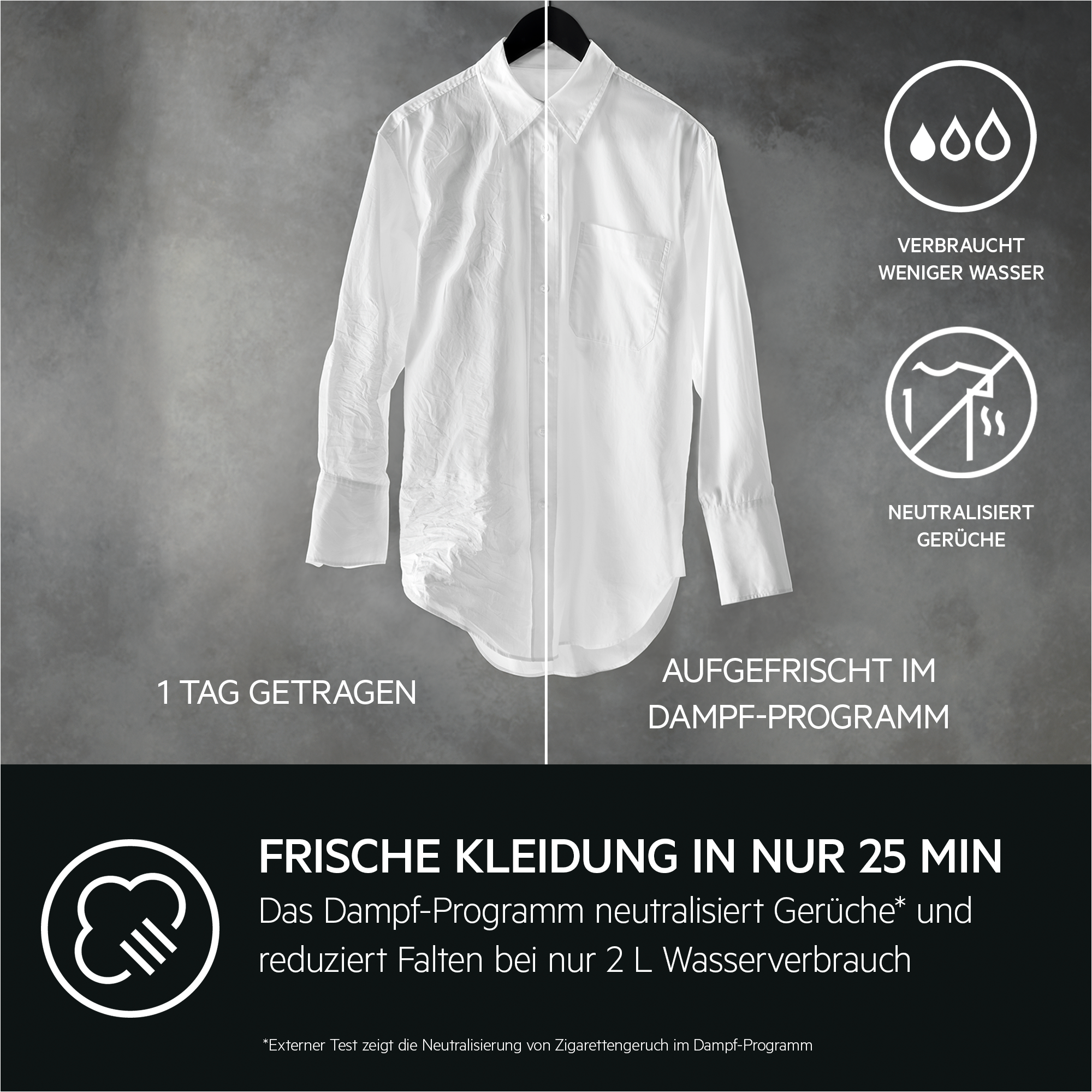 Машина оснащена технологіями ProSteam® та ProSense®, які забезпечують якісне прання з економією води до 40 %. Крім того, пральна машина може бути керована через мобільний додаток AEG, а також голосовим помічником Google Assistant.
