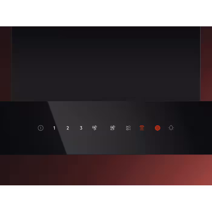 Управління здійснюється за допомогою сенсорної панелі з біло-червоним підсвічуванням, що додає естетичності. Освітлення витяжки реалізовано за допомогою світлодіодної стрічки, що дозволяє ефективно висвітлювати робочий простір кухні. Крім того, модель обладнана індикатором насичення жирового фільтра, що спрощує догляд за витяжкою.