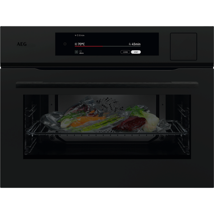 AEG NKP9S821T також оснащена термощупом для м'яса, автоматичними програмами готування в залежності від ваги продуктів та функцією пам'яті для збереження ваших улюблених налаштувань. На сенсорному дисплеї ви зможете вибрати один з 172 попередньо встановлених програм приготування, а також користуватися електронним регулюванням температури для досягнення ідеальних результатів.