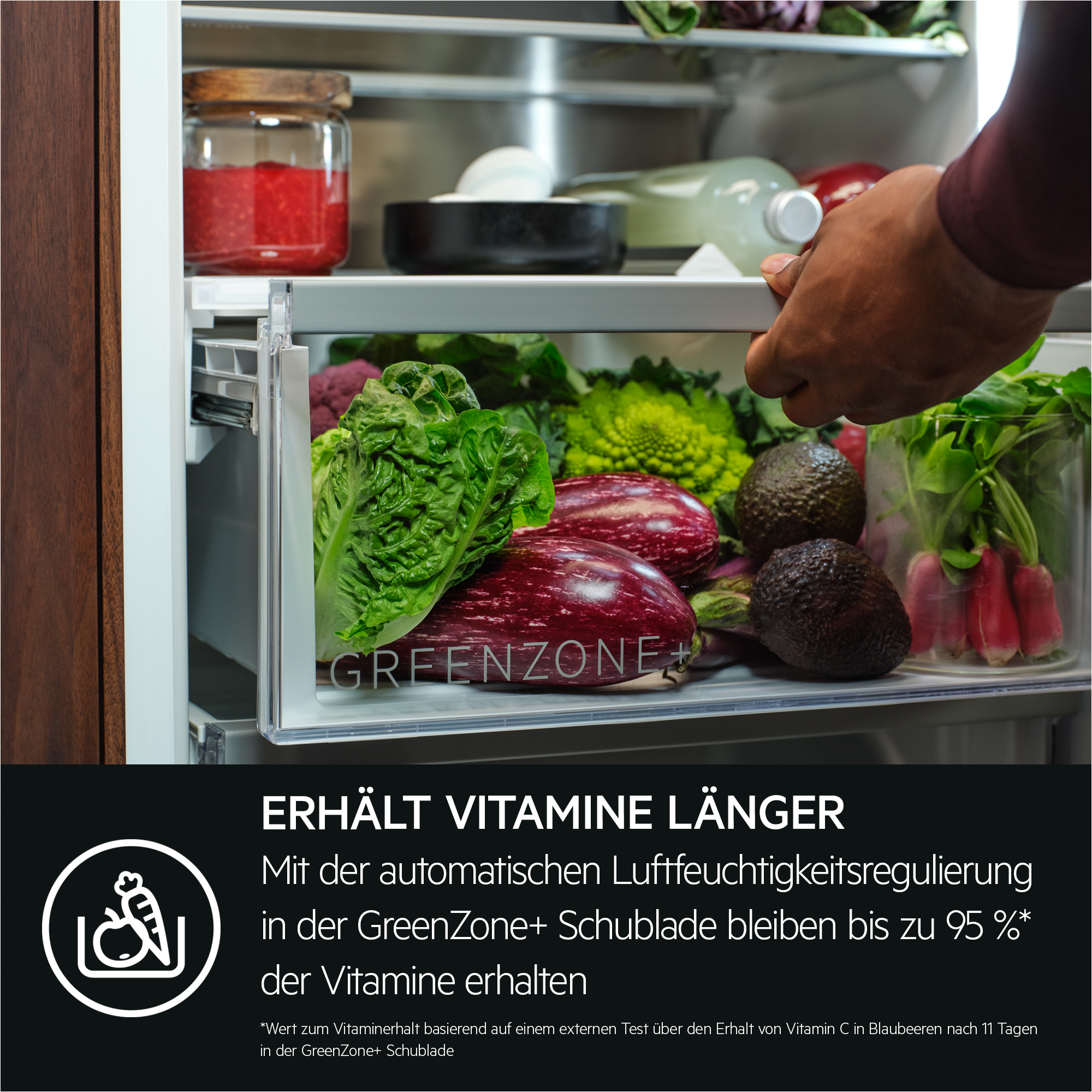 Модель AEG оснащена TwinTech® технологією, що забезпечує окрему циркуляцію повітря в холодильній та морозильній камерах. Це гарантує ідеальний рівень вологості та запобігає висиханню продуктів. LCD-дисплей з сенсорним керуванням дозволяє з легкістю налаштовувати параметри зберігання.