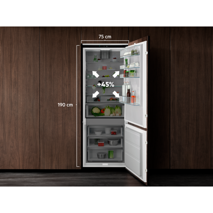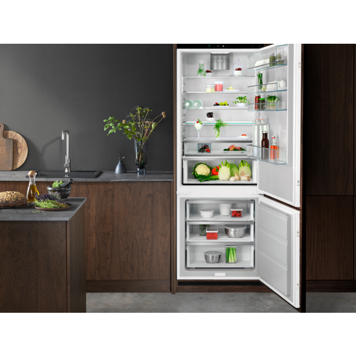 AEG NSC7P751ES - це сучасний вбудований холодильник, який поєднує в собі стильний дизайн та передові технології. З розмірами 1894x710x560 мм, він ідеально підійде для вашої кухні. Холодильник оснащений TwinTech®, який забезпечує оптимальну вологість зберігання продуктів, а також розташуванням правосторонніх, відворотних дверей, що дозволяє зручно інтегрувати його в будь-який інтер’єр.