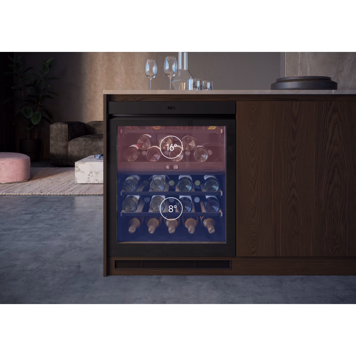 Холодильник AEG NSW8D826GT має **три повнорозмірні дерев'яні полиці** з обрамленням, що ідеально підходять для зберігання різних продуктів. Права дверця відзначена можливістю **обернення**, що дозволяє встановити холодильник у президентовій конфігурації вашої кухні.