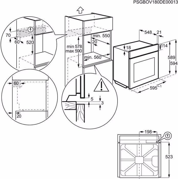 Духовка обладнана електронним таймером, що спростить управління часом приготування. Її компактні розміри (висота – 59.4 см, ширина – 59.6 см, глибина – 56.9 см) дозволяють вписати її в будь-який сучасний інтер'єр. Виготовлена з нержавіючої сталі, вона не тільки довговічна, але й дуже стильна.