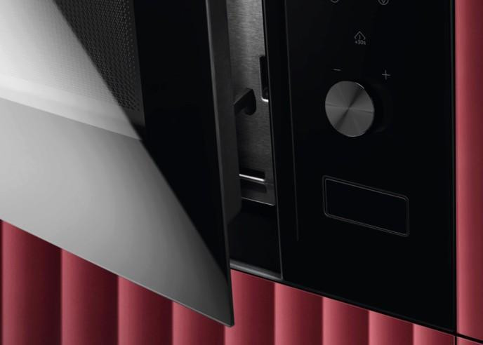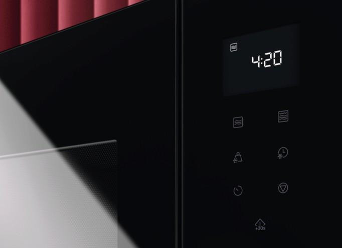 Модель виконана в стильному чорному кольорі та має сенсорний тип управління, що робить її використання простим та інтуїтивно зрозумілим. Розміри мікрохвильової печі становлять 59.4 x 38.2 x 31.8 см, тому вона не займе багато місця на вашій кухні. Спосіб відкриття дверцят здійснюється за допомогою кнопки, що додає комфорту у користуванні.