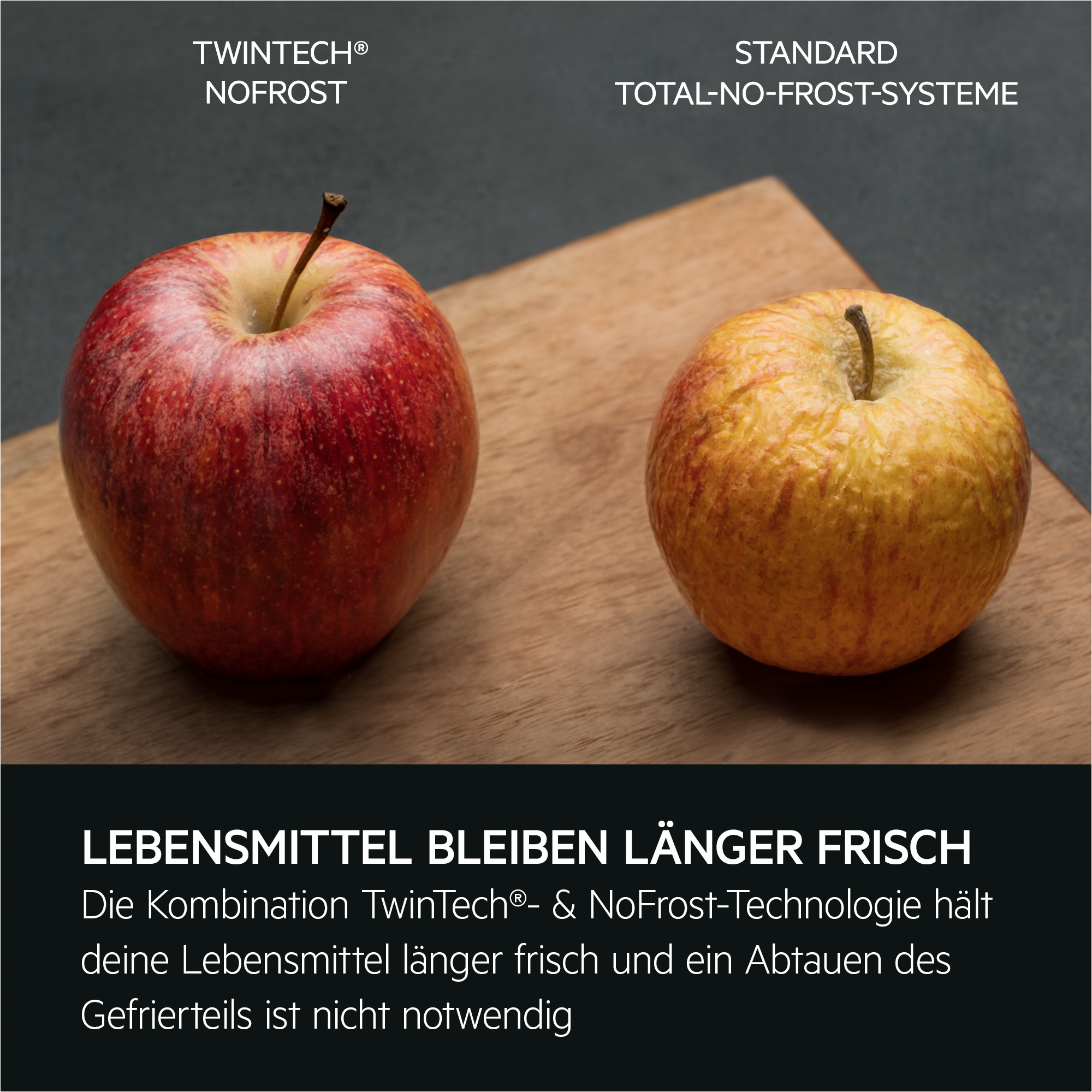 Цей холодильник має технологію NoFrost, що усуває необхідність ручного розморожування, а також ProFresh-технологію, яка надійно зберігає свіжість продуктів. Завдяки двом ящикам UltraFresh з автоматичним контролем вологості, овочі та фрукти залишаться свіжими на довгий час. Інноваційна 360°Cooling-технологія забезпечує рівномірний розподіл температури всередині холодильника.