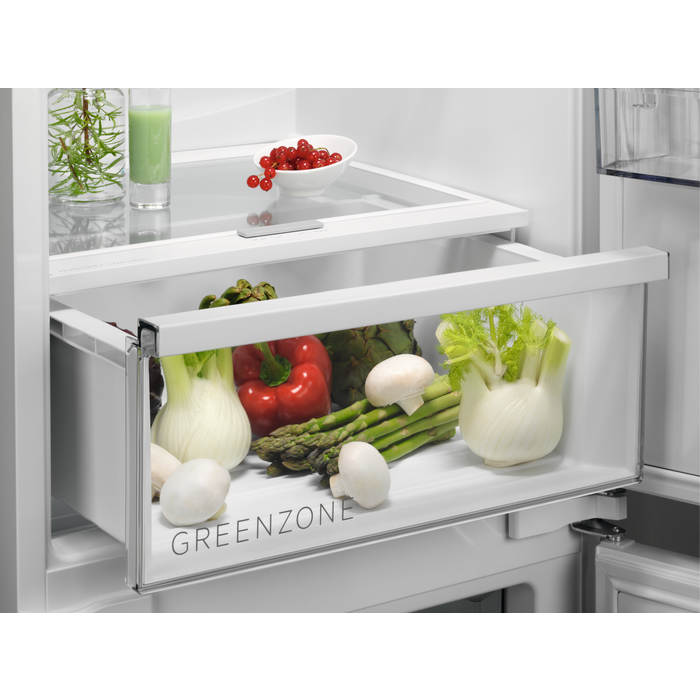 А також, холодильник AEG SCB818E8TS пропонує функцію швидкого заморожування Frostmatic, яка дозволяє швидко заморажувати продукти, зберігаючи їхню свіжість та харчову цінність. Функція Coolmatic дбає про швидке охолодження свіжих товарів, а режим Holiday знижує споживання енергії під час відсутності, запобігаючи появі цвілі та неприємних запахів.