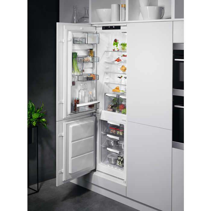 Холодильник AEG SCE81824TS поєднує сучасний дизайн і передові технології, надаючи користувачам високу ефективність і зручність. Його клас енергоспоживання A++ гарантує економію електроенергії без шкоди для продуктивності. Габарити холодильника становлять 1772x540x549 мм, що робить його ідеальним для вбудованих інтер'єрів.