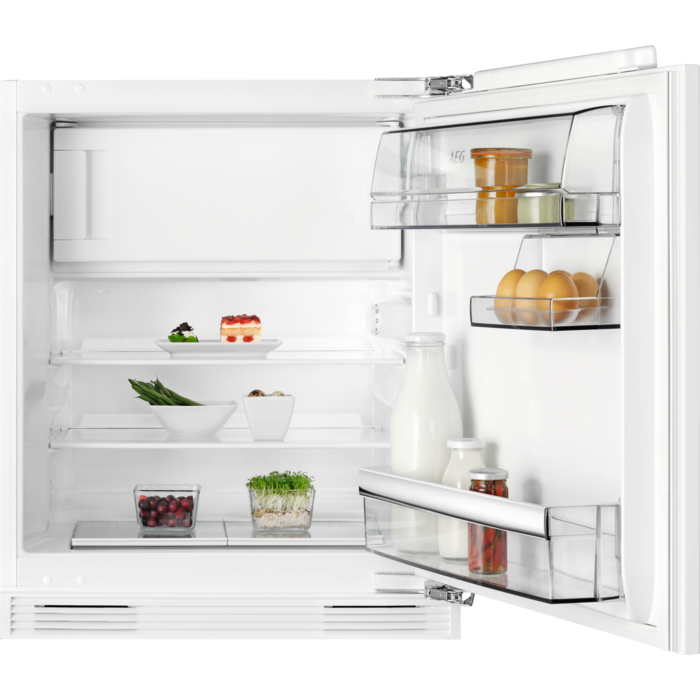 AEG SFB58211AF також включає **дві скляні полички** повної ширини, **одну прозору пластикову шухляду** для зберігання овочів та **піддон для яєць**. Окрім того, холодильник працює дуже тихо, з **рівнем шуму всього 38 дБ** - ідеальний варіант для використання у будь-якому приміщенні.