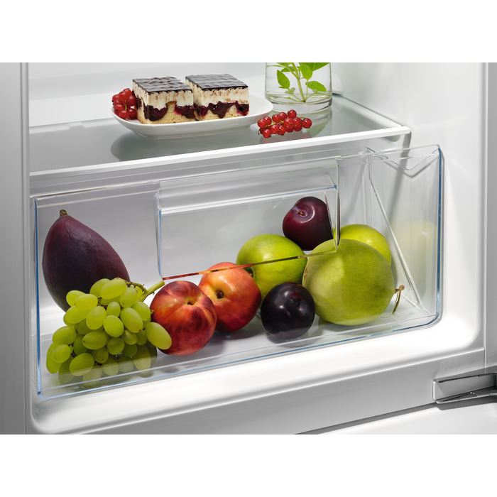 Загальний об'єм холодильника складає 142 літри, що дозволяє зберігати велику кількість продуктів. У ньому ви знайдете LED підсвітку в холодильній камері, що забезпечує чудову видимість і дозволяє легко знаходити необхідні продукти. Для зберігання овочів і фруктів передбачено спеціальну шухляду, а також скляні полички, їх кількість - 3.