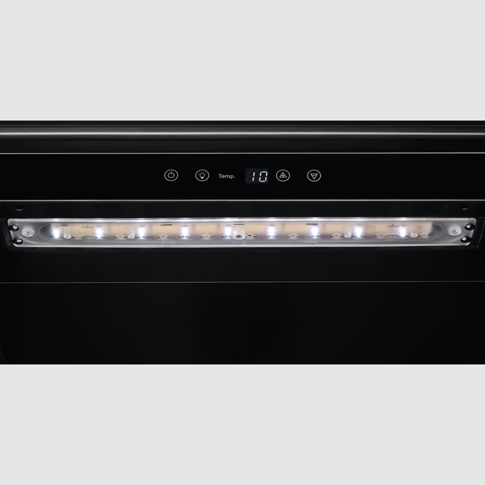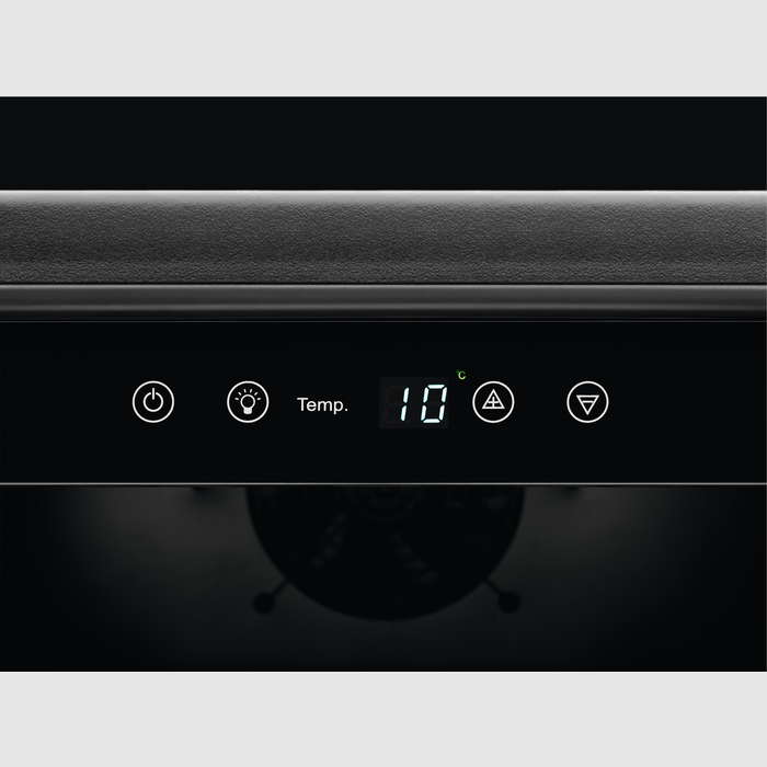 Інтуїтивно зрозуміле керування з цифровим дисплеєм дозволяє легко контролювати температуру всередині шафи, також передбачено функцію автономного регулювання вологості, що є незамінним для створення оптимальних умов зберігання. Кожен шанувальник вина оцінить стильний зовнішній вигляд з дверцями з загартованого скла та вишуканою ручкою, яка додає нотки розкоші до будь-якого інтер'єру.