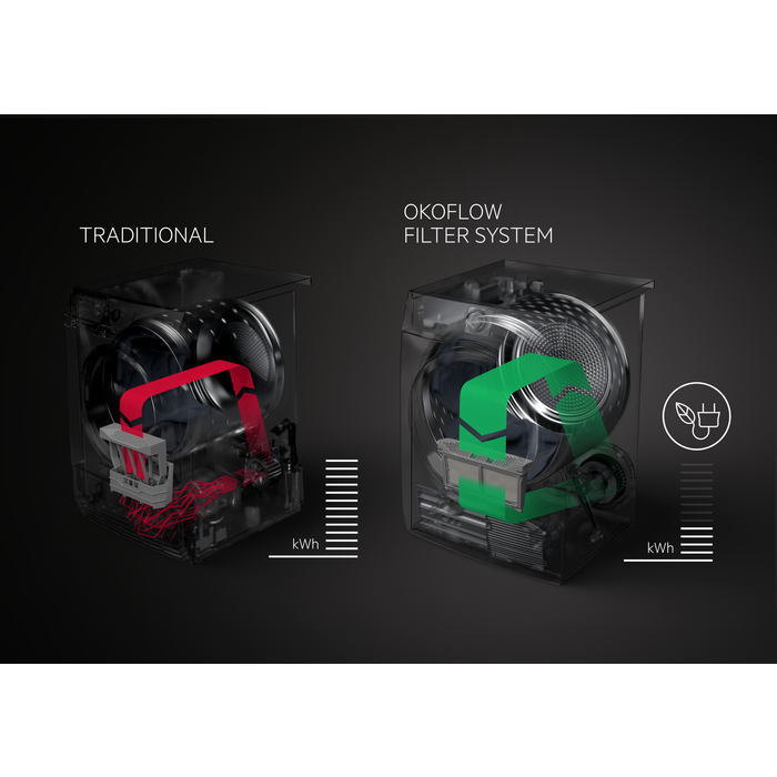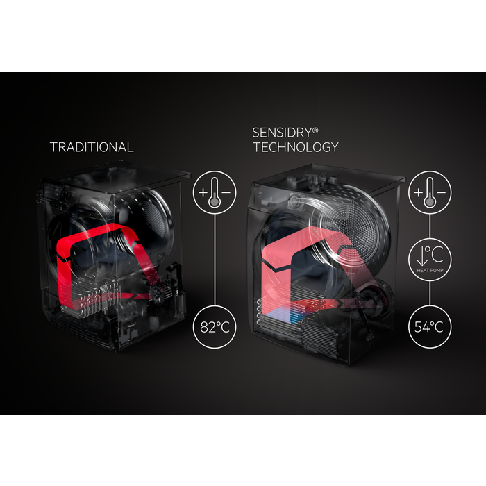 Надійність та ефективність нашого пристрою забезпечує технологія термопомпи, яка не лише дбайливо сушить одяг, але й заощаджує електроенергію. Ця модель не лише реагує на вологість тканин, а й має інтелектуальний сенсор, що відстежує рівень вологості, завдяки чому ви завжди отримуєте ідеально висушений одяг. Додаткові програми дозволяють вибрати оптимальний режим для різних типів тканин, включаючи спеціальні програми для постільної білизни, джинсів та синтетичних матеріалів.