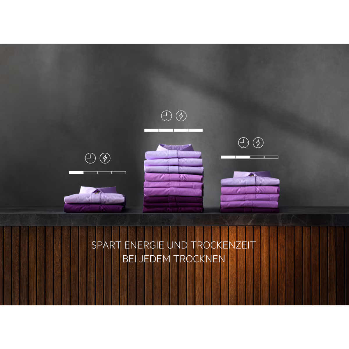 В основі роботи моделі лежить технологія теплового насоса, яка є дуже енергоефективною та екологічною. Особливістю є SensiDry®, що гарантує делікатне сушіння, запобігаючи пересушуванню тканин. Разом із ProSense® автоматикою, яка регулює тривалість сушіння в залежності від вологи, ви завжди отримаєте ідеальний результат.