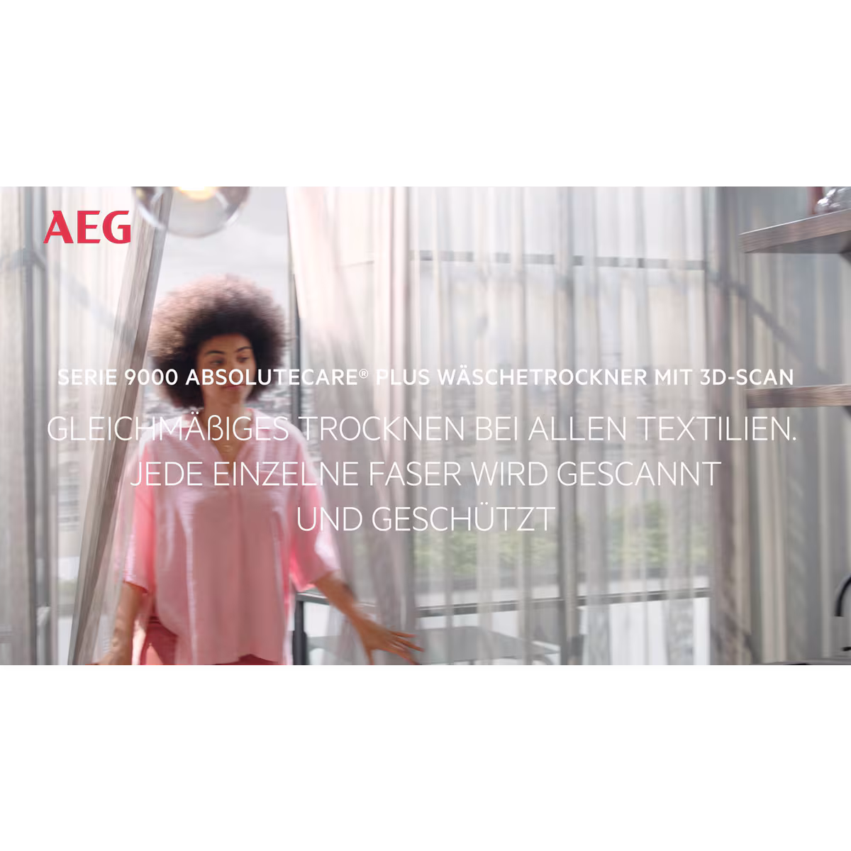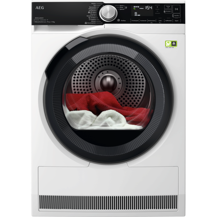 Серед основних переваг моделі є 3DScan Technology для оптимальногоi сушіння та AbsoluteCare® System, яка дбайливо обробляє різні типи тканин. Машина також має функцію Wifi-мережі, що дає змогу контролювати сушіння через додаток AEG, а також голосове управління через Google Assistant. Завдяки технології SensiDry® та ProSense, пристрій точно визначає кількість білизни і необхідний час сушіння.