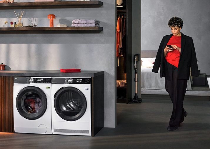 Сушарка має Wi-Fi підключення, що дозволяє управляти її функціями з мобільного додатку AEG. Ви також зможете використовувати голосове керування через Google Assistant для ще більшої зручності. Інтелектуальна система ProSense визначає об'єм завантаження та необхідний час сушіння всього за одну хвилину, що робить процес автоматизованим і легким.