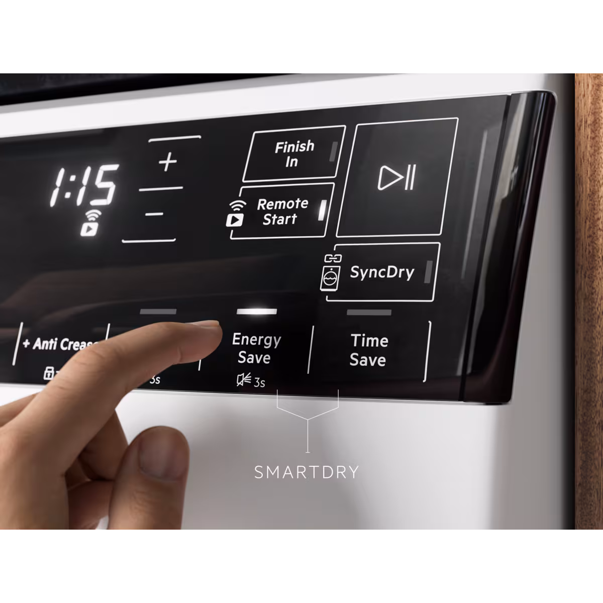 Розумна функція SyncDry дозволяє передавати інформацію про програми з мобільного додатку автоматично. Завдяки великій завантажувальній двері та доступному контейнеру для конденсату, які зручно розташовані, експлуатація стає простою. Енергетична ефективність класу A надає вам спокій у питанні зниження споживання електроенергії, а високий рівень конденсації (до 94%) гарантує якість сушіння.